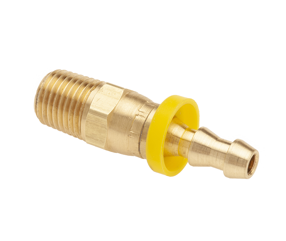 A hose barb is defined as one or more continuous ridges or bumps on a fitting that are used to grip the inside diameter of a tube and seal the connection. As a tube is installed on the fitting, it expands over the barb. Grip and seal occur as the tube tries to relax to its original inside diameter behind the barb. See our wide selection of brass hose barbs and mini-hose barbs by browsing below: